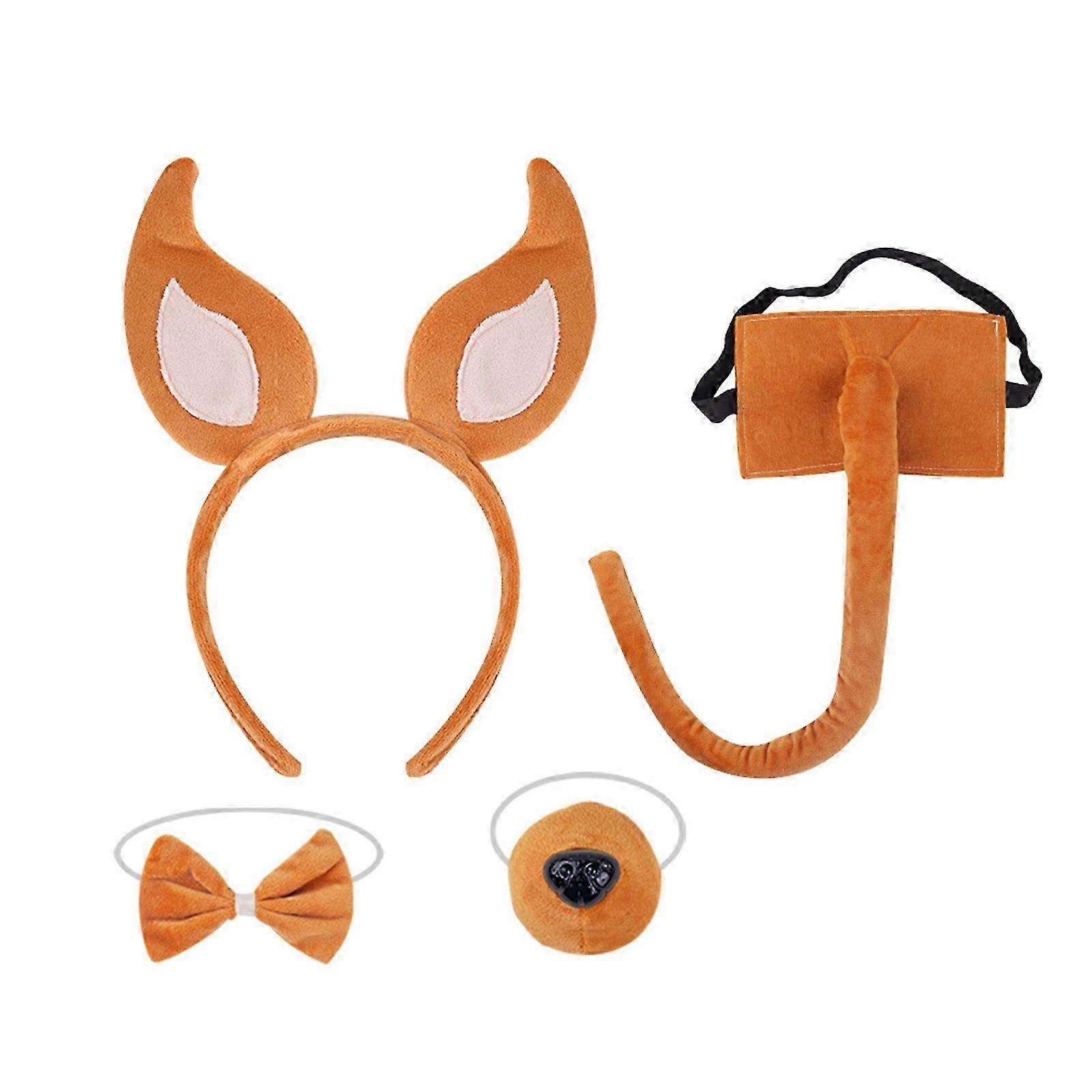 Dogs Ears Headband Plush Tail Bowtie Dog Hair Hoop Set Mesh Skirt Foxes Costume Set for Halloween Costume Cosplay
