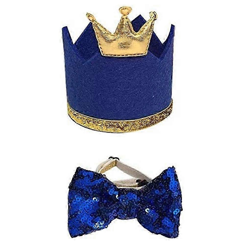 Dog Birthday Tie Collar Set with Bow & Crown Hat for Small Medium Dogs