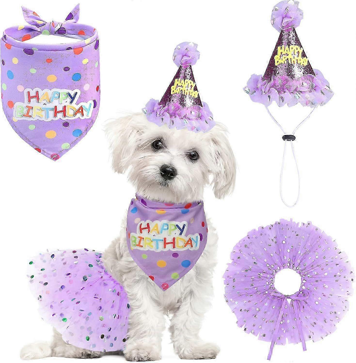 Dog Birthday Bandana with Hat and Dress Girl Set, Puppy Birthday Party Supplies, Cute Tutu Skirt Outfit for Small Medium Large Dogs