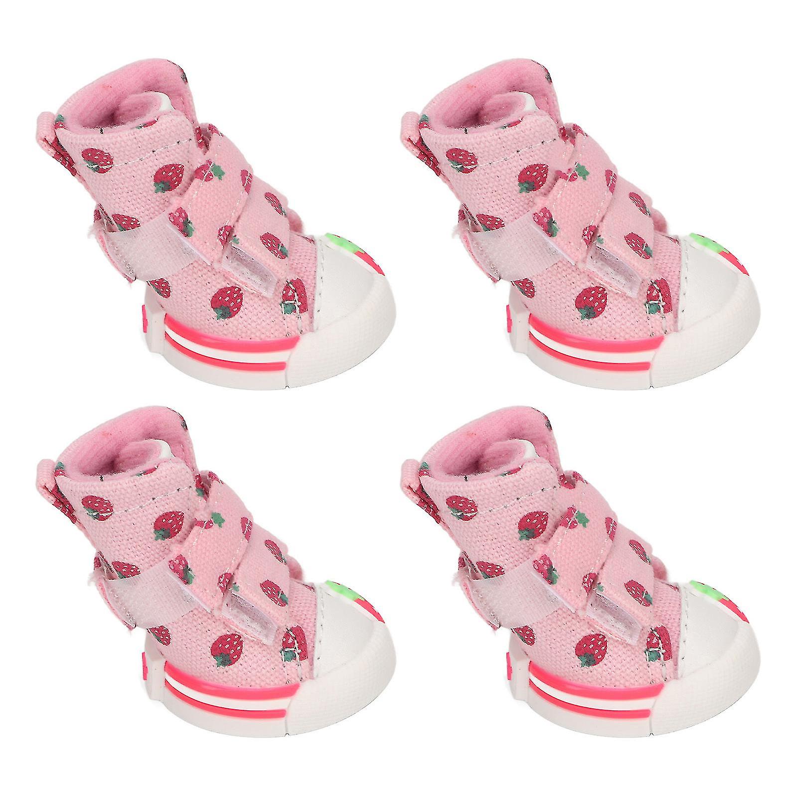 Dog Shoes Slip Resistant Breathable Canvas Cute Strawberry Dog Boots for Small Dogs Teddy Bichon Pomeranian 4