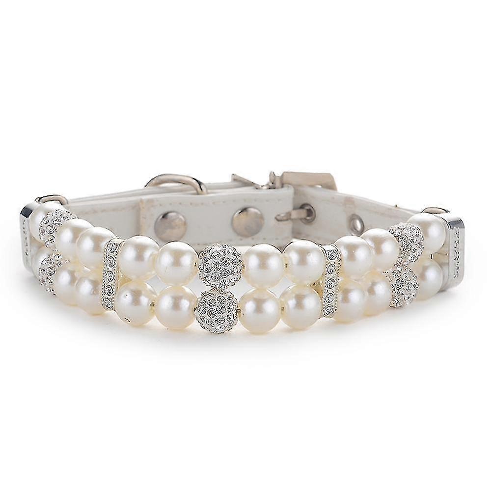 Dog Cat Cute Fashion Pu Leather Pearl Collar With Crystal Rhinestone