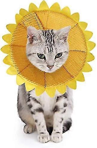 Dog Cat Anti-Bite Adjustable Recovery Collar with Sunflower Pattern - Soft Comfy Cone for Pets After Surgery (S)