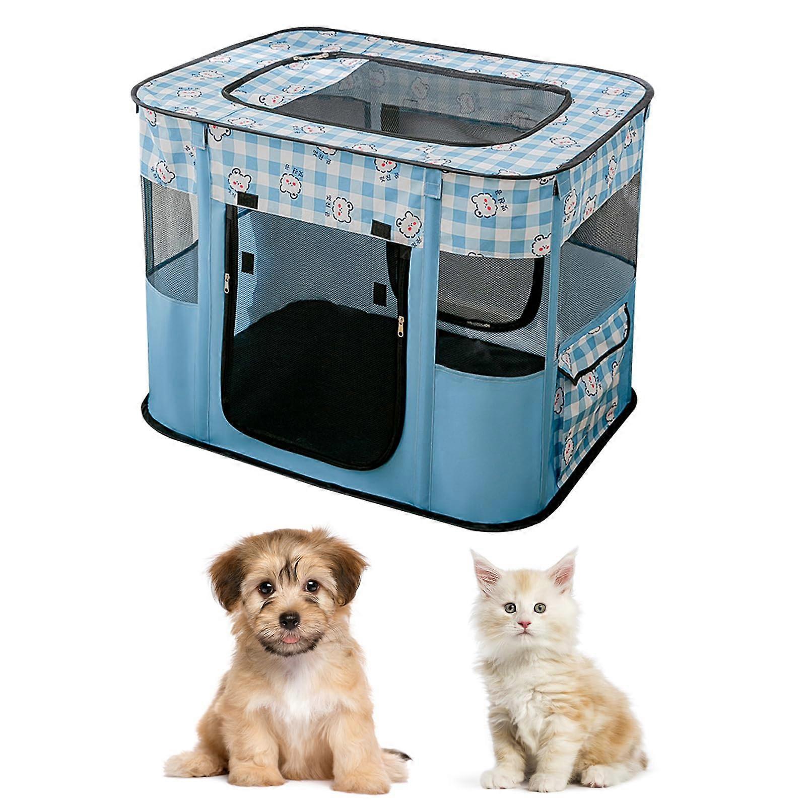 Foldable Pet Playpen for Dog Cat Indoor Outdoor Travel 110x85x60cm Blue