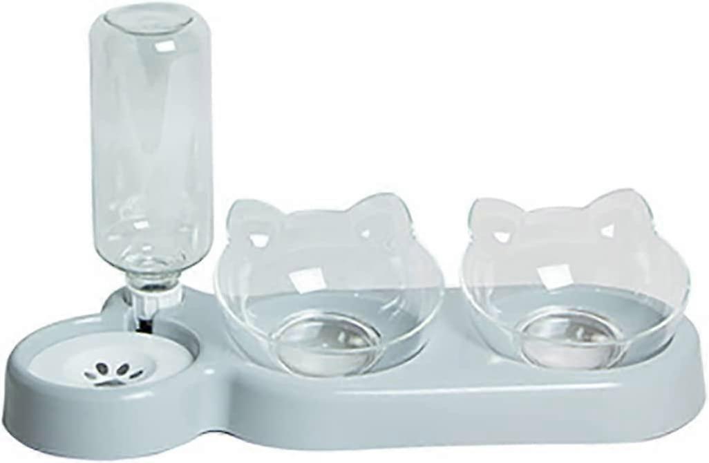 Dog Cat Bowl Double - Tilted Elevated Cat Food Bowl Nonslip Clear Puppy Feeder Dish Pet Feeding Bowl with Water Dispenser Stand Grey -