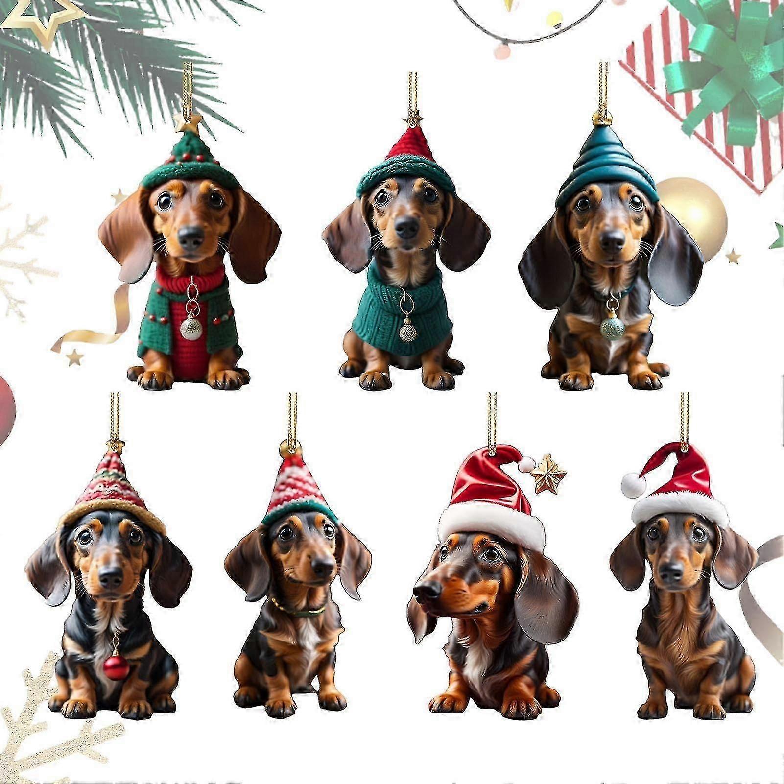 Dog Christmas Tree Hangings Ornaments-7pcs Dachshunds Dog Christmas Tree Ornament Christmas Tree Pendants Hanging Pendants