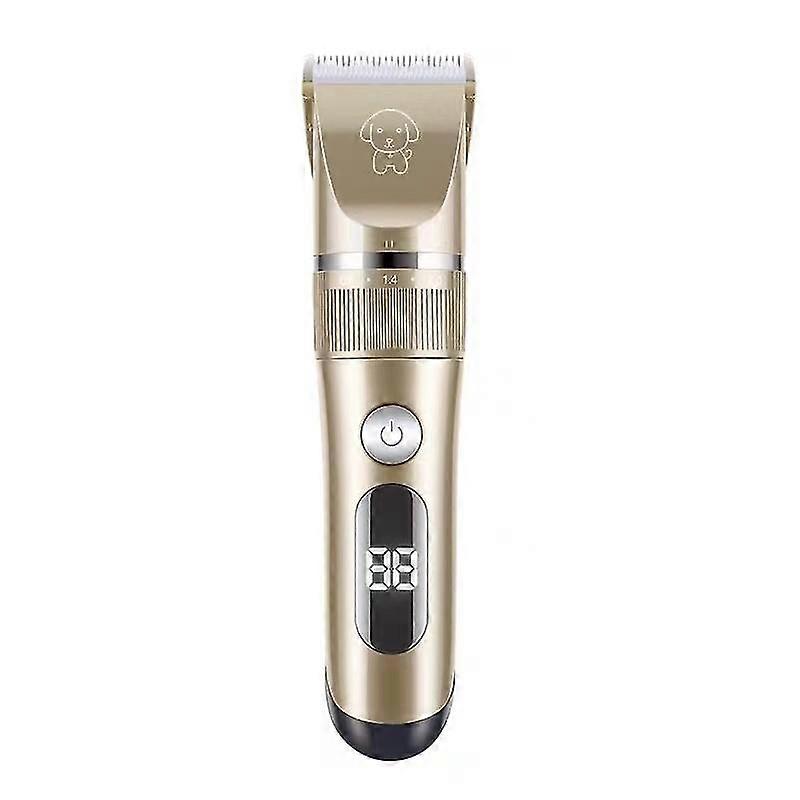 The detachable blade is made of ceramic titanium for a precise edge. Besides, it is durable and of high quality to protect your pet from pulling and cutting. Five combs of different sizes to meet your different needs. It is also a nice Valentine's Day gift Five levels of free adjustment, effective trimming for different lengths and different parts of pet hair. family and friends who have pets. USB fast charging port, ultra-efficient and fast, simple and convenient, suitable for all occasions, standby time up to 3 hours, depleted power can also be connected to an external power source. Ultra-quiet and minimal vibration can help calm the pet, facilitate the grooming process, and no longer see your pet scared.< /p> The body can be washed the whole body, the blade can also be removed from the machine and brushed to clean and remove remaining hair, reducing the production of bacteria, more clean and hygienic. < p>Product Description Features: IPX7 Waterproof: the dog clipper can be washed all over the body without fear of rust. Professional ceramic blade : they are made of titanium and ceramic, so they last a long time. Fast charging and long battery life: 3 hours of charge, 70 minutes of use. USB charging: With various charging methods, it is possible to charge the device anytime and anywhere, via computer, mobile phone, etc. LCD display: clearly indicates the remaining power and other data, which makes the use more convenient. Quiet use: when you help your cats and dogs to cut their hair, the device does not scare them.< /p> Cordless design: you can freely trim your pet's hair and no longer worry about getting tangled with the power cord. Specifications: < p>Voltage: 100v-240V Frequency: 50/60Hz Water resistance: IPX7 Charging time: 2~3 hours Use time: 70min Waterproof function IPX7 waterproof design can clean the body. You can also remove the blade and clean the blade with a brush. The waterproof design helps to clean more thoroughly and reduce the generation of bacteria. Quality materials The head is made of titanium and ceramic. Professional hair clippers are very sturdy and perfect for cutting hair. The powerful motor ensures excellent performance over a long period of time. The comb installation method Grasp both sides of the comb to aim for the button placement, then push (caution: the comb must be tight) The uninstallation Push both sides of the comb (caution: do not press the pin of the comb which will damage it.< /p> Comb the animal's hair carefully with a comb. If the animal is dirty or there is something in the hair, wash it. Keep pet hair dry and clean when using Note: If there is sand in your hair, if you use this product to shave or shave your damp hair, it will shorten the life of the device. If you cannot detangle your hair, shave some of it We recommend that you cut most of your hair with proper dog scissors before shaving, it will avoid pulling your pet's hair Contents 1dog clipper 1 hairdressing scissors 1tweezers 4Limit comb 1Comb 1Cleaning brush 1USB charging cable 1User manual