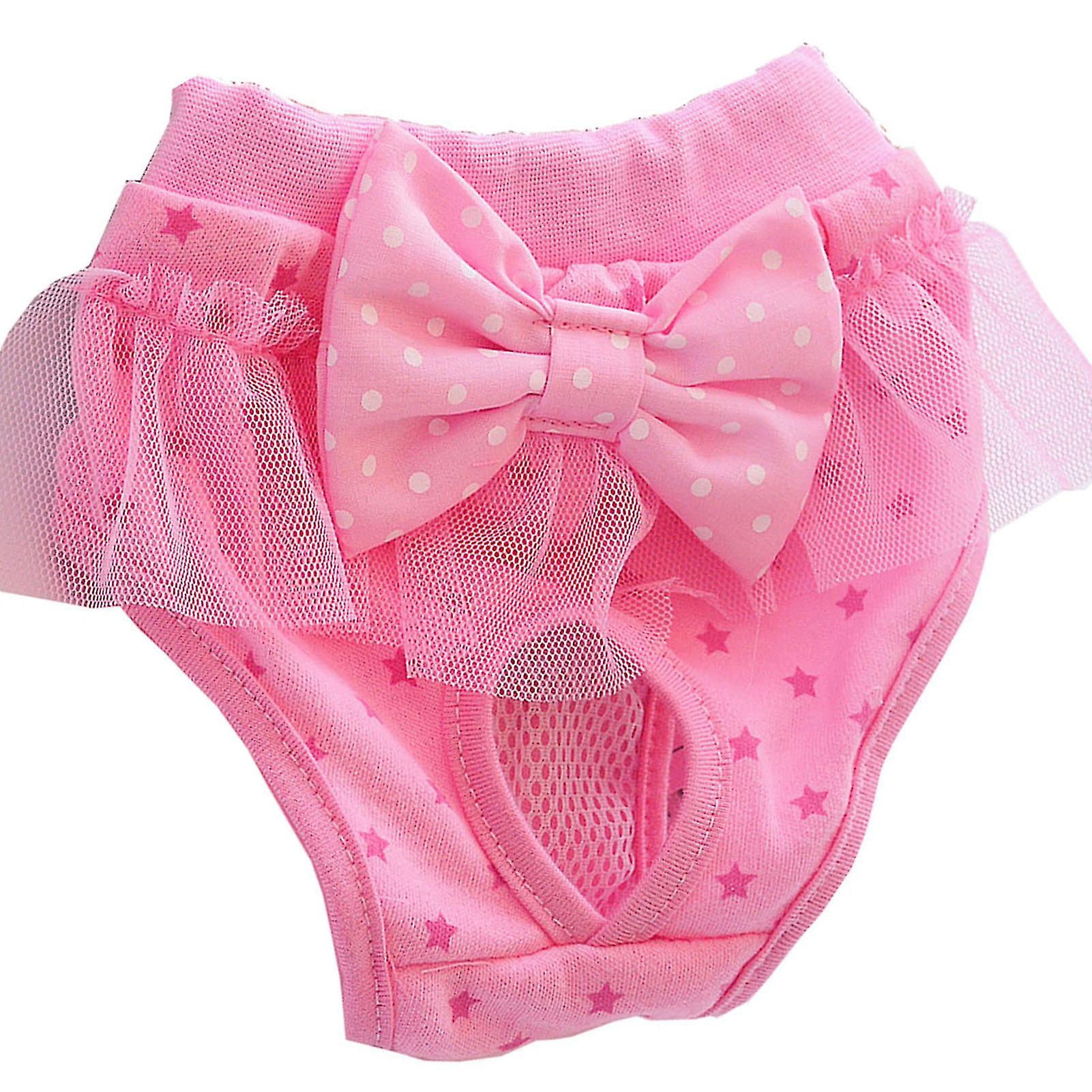 Dog Sanitary Pants Cute Bow Printed Washable Reusable Elastic Pet Physiological Shorts for Dogs Puppies Pets M