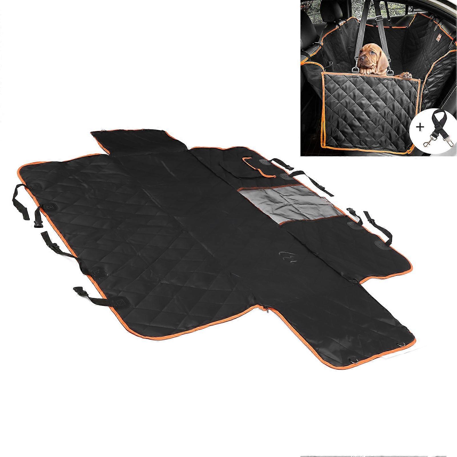 Dog Seat Cover Waterproof Oxford Cloth Dog Backseat Extender Breathable Anti Slip Bottom Dog Car Seat Cover 147x137x40cm Orange Edge with Safety Belt
