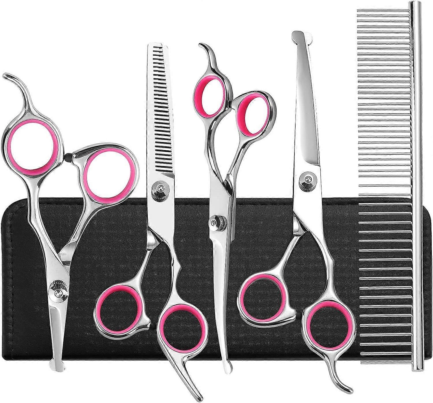 Portable: - Bonus a comb (massaging / throwing out loose hair / straightening hair in a knot ), a cleaning cloth and a high quality leather case with an elastic band to fix the scissors, this grooming kit is super portable which allows you Easily enjoy pet hairstyle at any time.