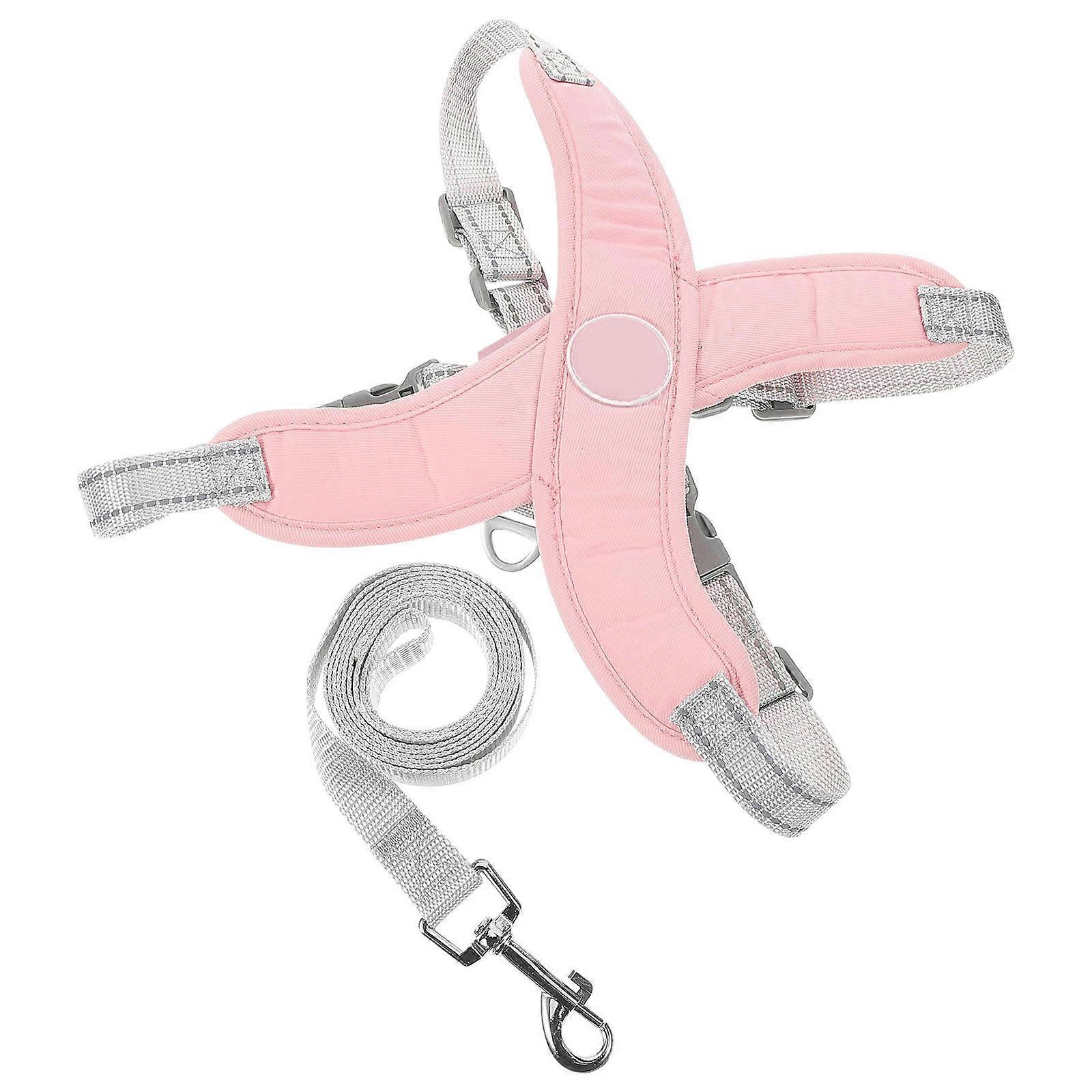 Dog Harness with Leash Pet Walking Gear Pink Reflective for Night Use 1Set