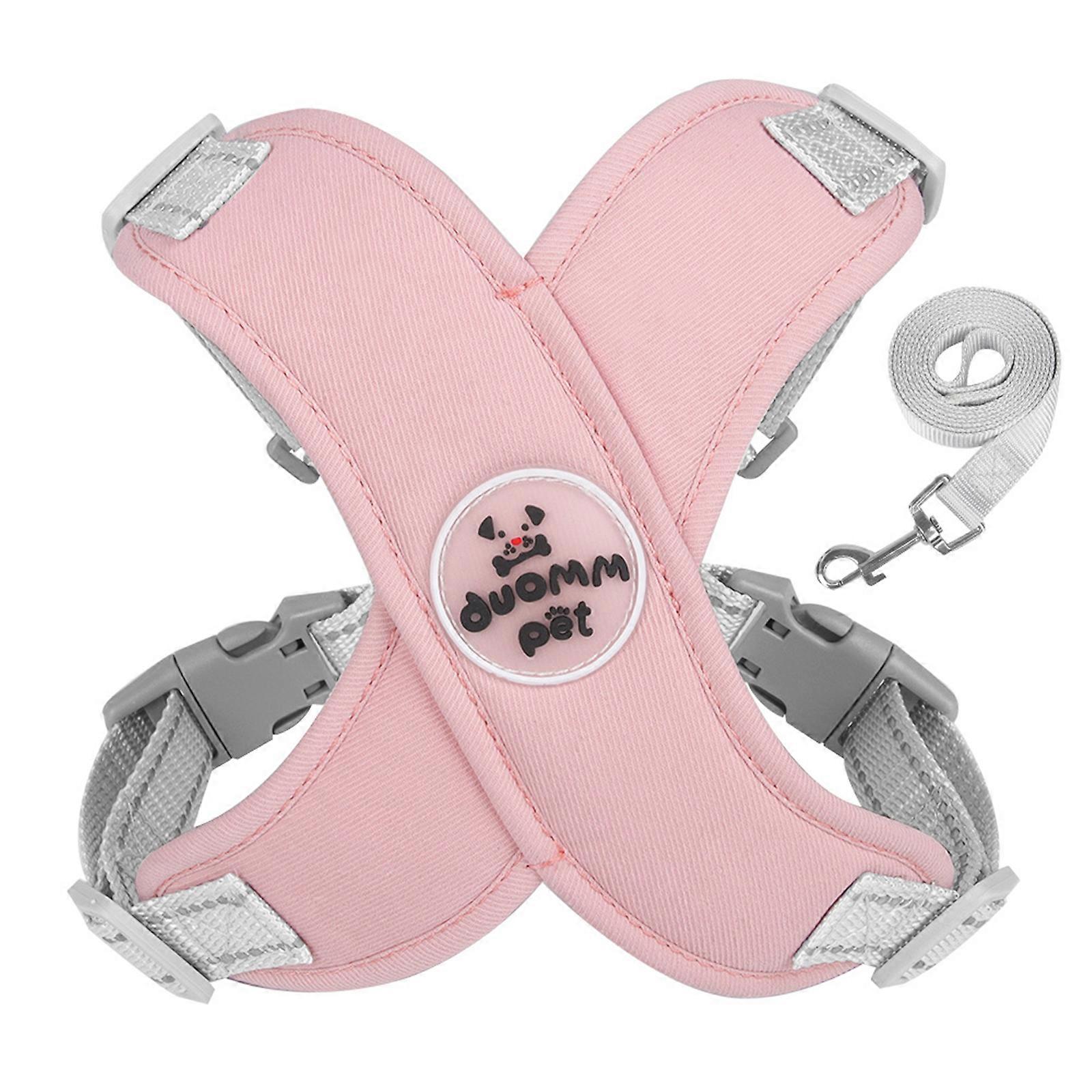Dog Harness No Pulls Pet Vest with Solid Metal D-Ring for Small Medium Dogs Reflective No Choke Harnesses with Leash S Pink