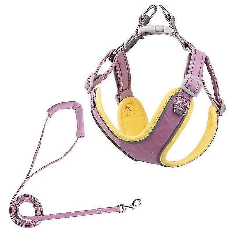 Dog Harness Cat Outdoor Walking Leash Pet Collar Rope S Purple Yellow