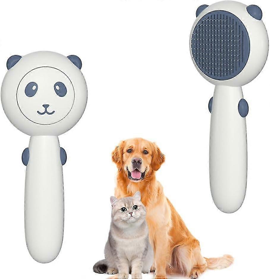 Cute Panda Shaped Cat Brush Remove hair : Effectively cleans pet and remove loose hair, while cleaning dirt and dust; Reduce hair tangles: Brush your pet frequently can protect your pet's hair and keep their hair shiny. Massage Effect: Provide a comfortable massage to improve blood circulation, combing is just like a SPA. Friendly & Comfortable Needles With 184 rounded rubber tips, Cat grooming brush groom and massage the undercoat well without scratching the pets skin, gentle and comfortable,grooming is like a SPA. Regular combing can stimulate pet skin blood circulation, speed up metabolism, and promote fur renewal, making this cat brush an essential tool for pet grooming. Professional Cat Hair Brush The 140 curved stainless steel bristles and 15mm long bristles of the cat dog hair brush can penetrate deep into the coat and effectively remove hair up to 96%.To give your pet a comfortable and enjoyable grooming experience, gentle movements are needed when combing your pet hair, especially short-haired pets. One-touch CleaningPet brush has an humanized hair removal mechanism. After combing the pet's fur, simply click the button to separate the brushed hair from the metal needle, and then peel off the hair. Takes only about 5 seconds to clean due to the slicker brush self-cleaning feature. This significantly saves the time and energy for grooming and cleaning.