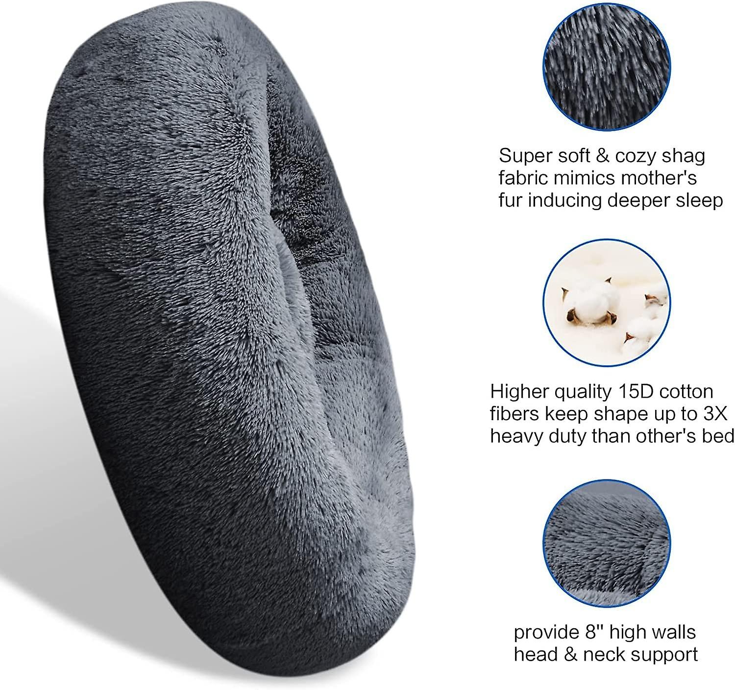 Dog Bed, Anti Anxiety Dog Bed, Plush Donut Dog Bed,Soft Fuzzy Comfy Dog Bed in Faux Fur,Sizes:50*50c