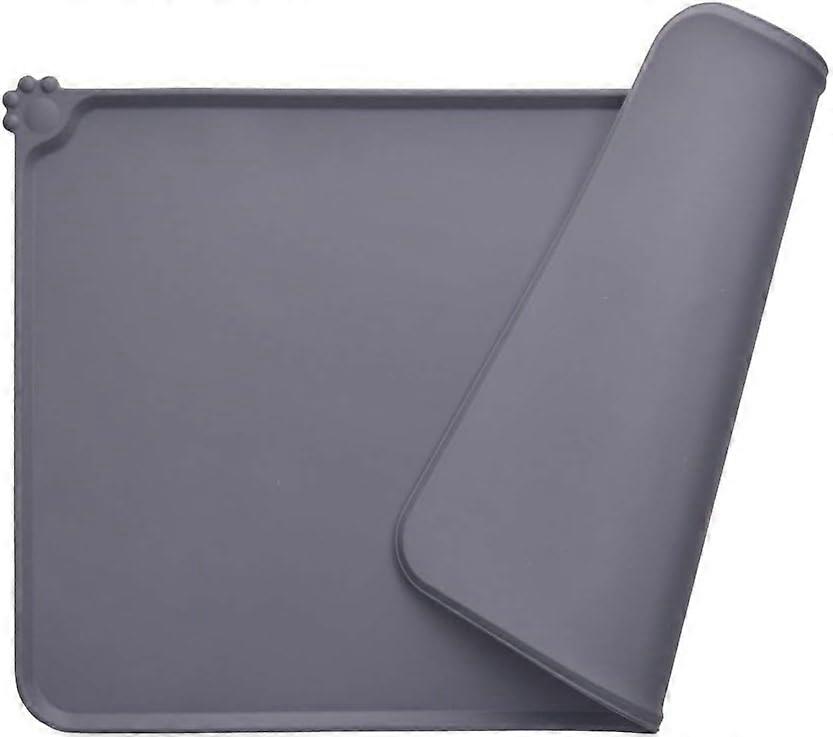 Dog Bowl Mat, FDA Compliant Silicone Cat Feeding Mat, Waterproof and Non-Slip, Grey, 47 x 30 cm