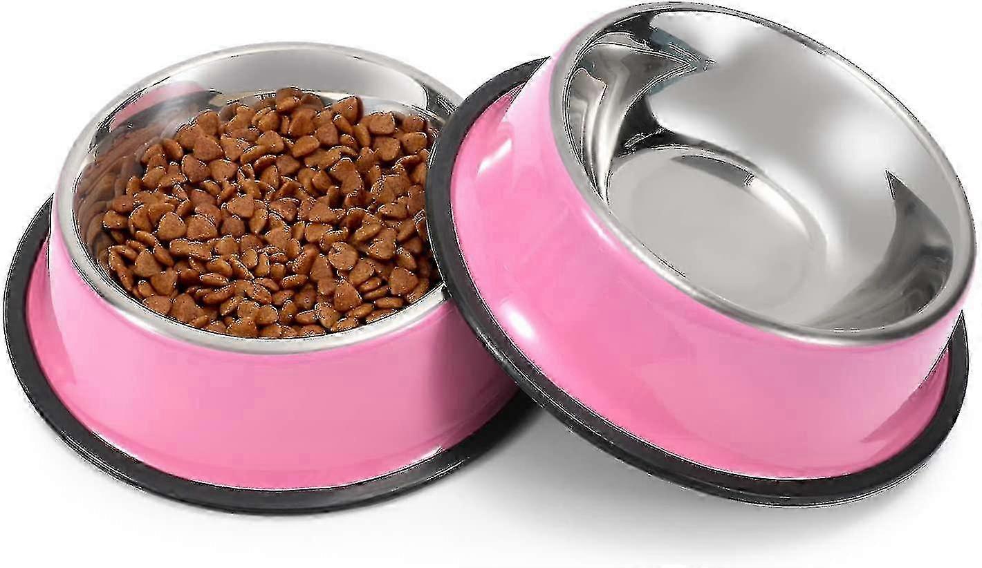 2 Pieces Dog Bowls, Stainless Steel Dog Cat Bowls Pink 18cm--