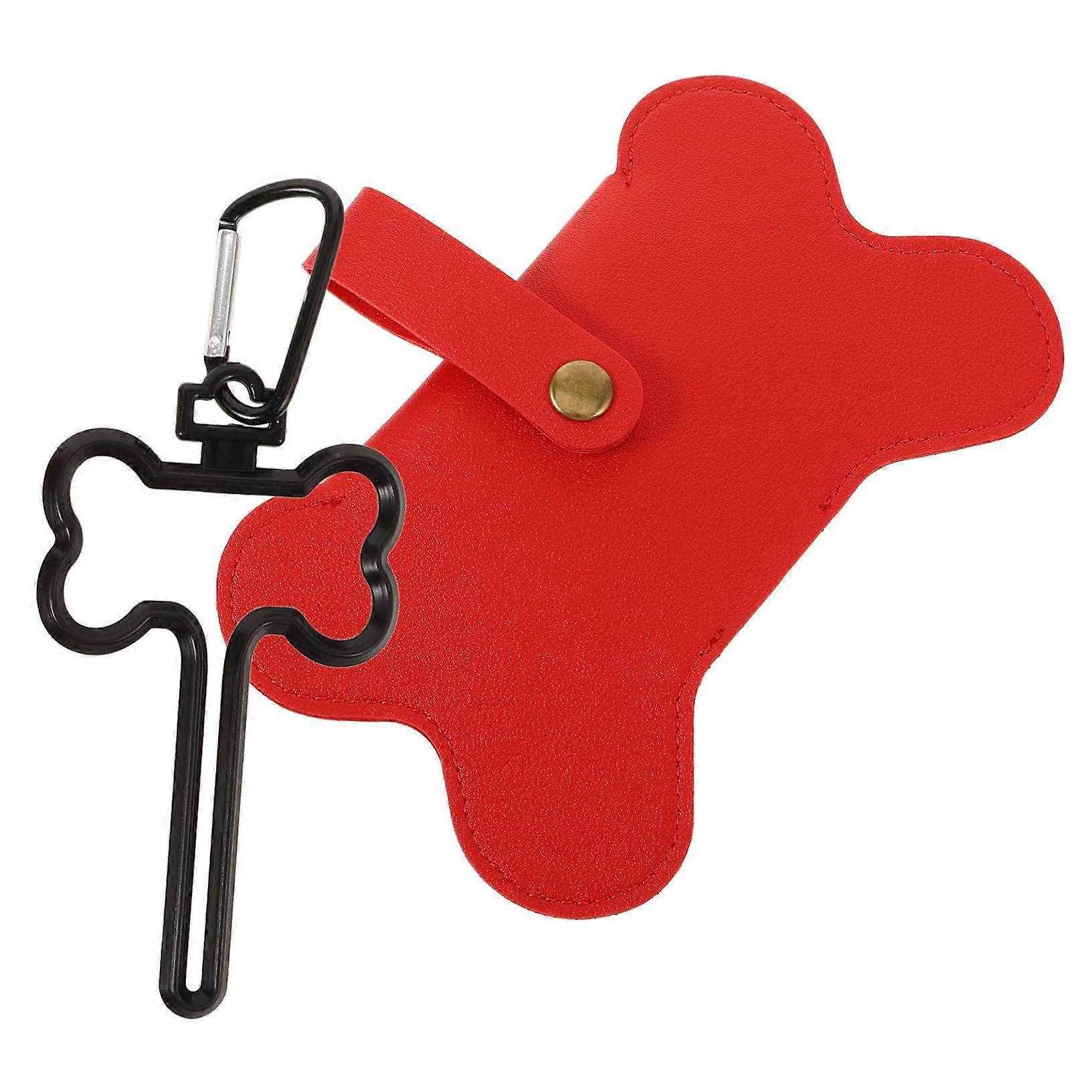 Dog Lead Waste Bag Holder Mounted Walking Carry Harness Red Leather