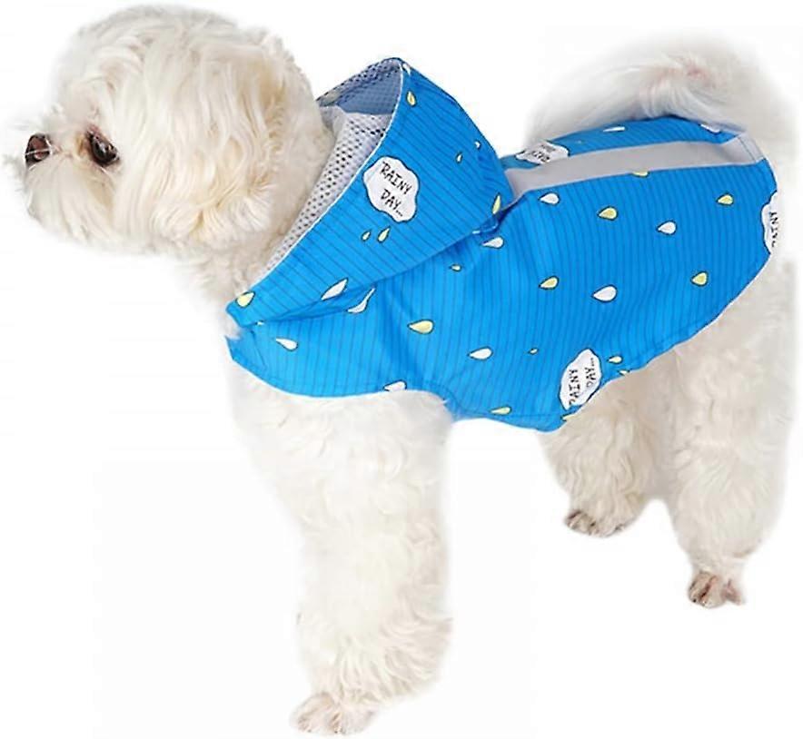 welcome to my store, Hope you have a pleasant shopping trip! Specifications:Material: Waterproof polyester fabricColor: blueReference Size:S-Bust Girth 30.0-32.0cm/11.8"-12.6", Bust Girth 22.0-24.0cm/8.7"-9.4", back length 20.0cm/7.9", reference weight 1.0-2.0KgM-Bust Girth 36.0-38.0cm/14.2"-14.9", Bust Girth 25.0-27.0cm/9.8"-10.6", back length 25.0cm/9.8", reference weight 2.5-3.0KgL-Bust Girth 43.0-45.0cm/16.9"-17.7", Bust Girth 29.0-31.0cm/11.4"-12.2", back length 30.0cm/11.8", reference weight 3.5-4.5KgXL-Bust Girth 48.0-50.0cm/18.9"-19.6", Bust Girth 32.0-34.0cm/12.6"-13.4", back length 35.0cm/13.8", reference weight 5.0-6.0Kg2XL-Bust Girth 54.0-56.0cm/21.3"-22.0", Bust Girth 35.0-36.0cm/13.8"-14.2", back length 40.0cm/15.7", reference weight 6.5-7.5KgPackage List:1 X Dog Raincoat Hooded Slicker 1 X Storage BagNotes:1. Due to the difference between different monitors, the picture may not reflect the actual color of the item. We guarantee the style is the same as shown in the pictures.2. Please allow 1-2cm slight dimension difference due to different manual measurement.
