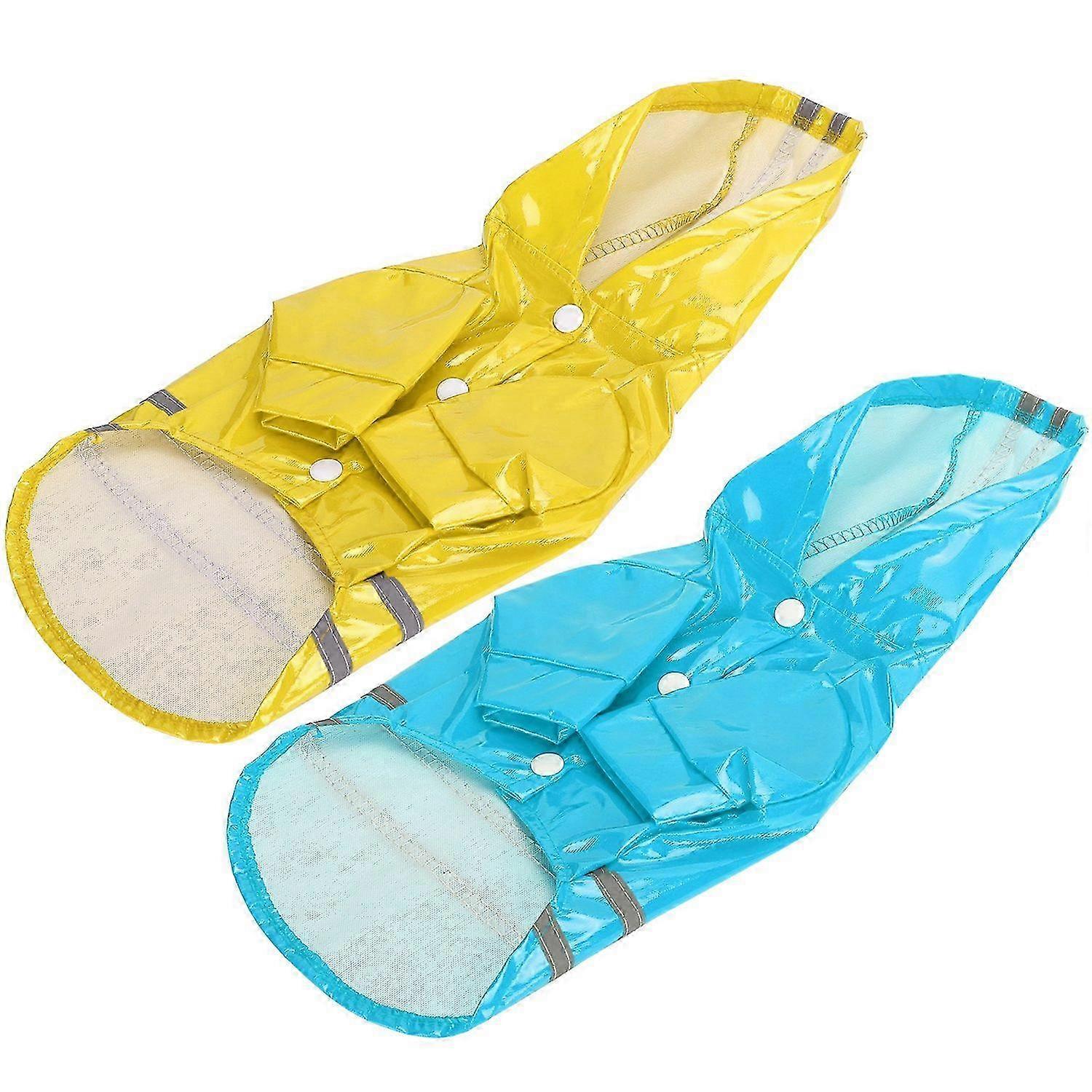 2pcs Dog Raincoat Waterproof Coat Hooded Rainwear with Safety Reflective Stripe Yellow Blue(YellowBl