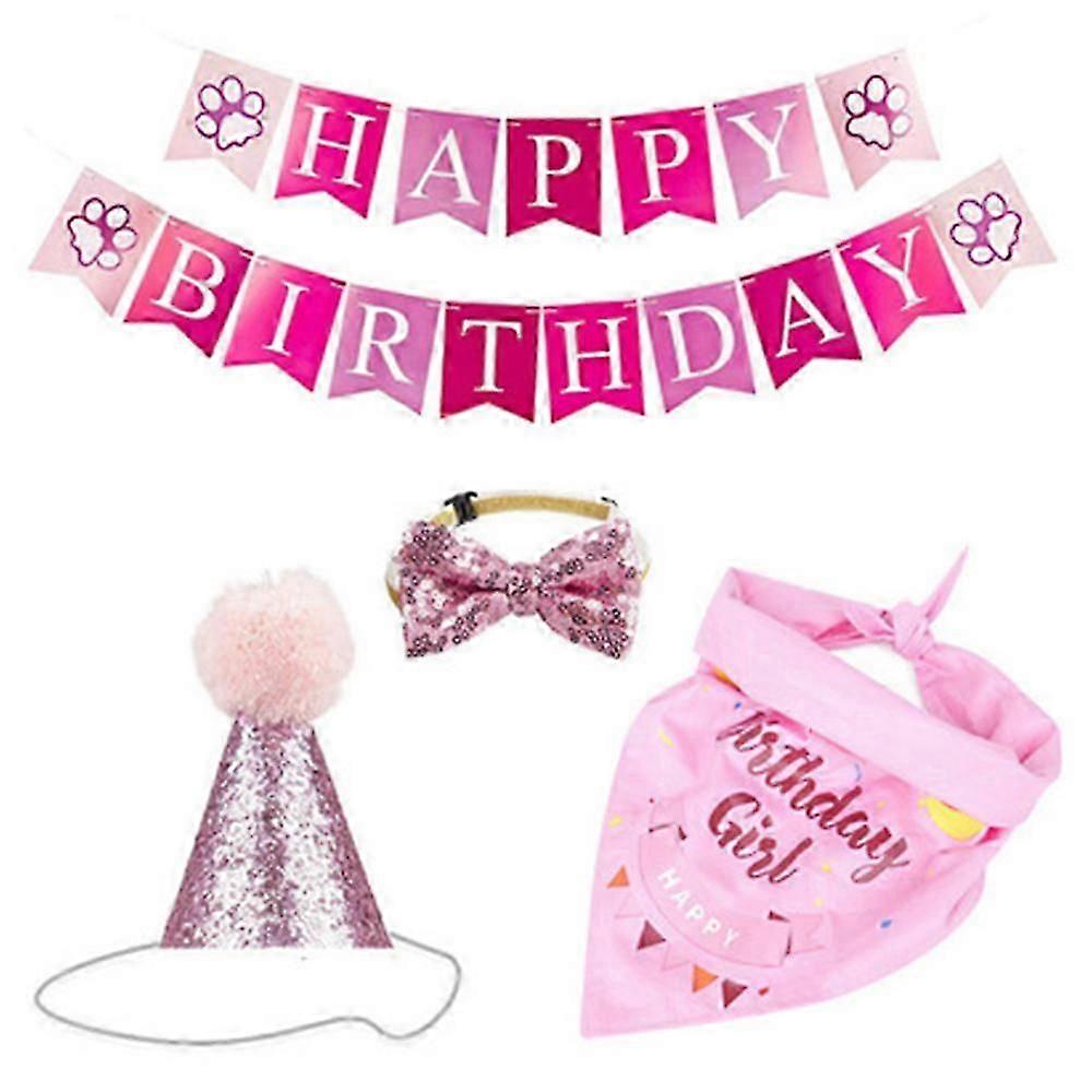 Dog Supplies,pet Hat And Dog Bandana Set,pink