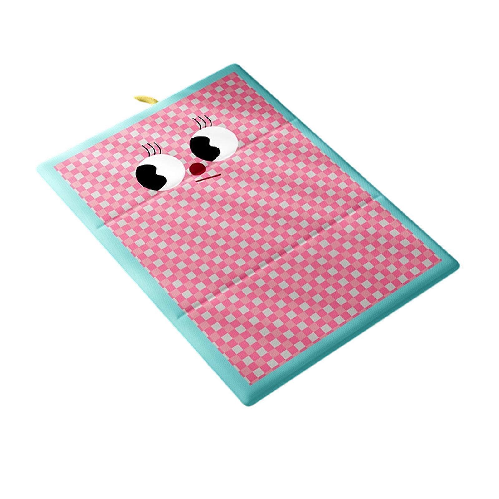 Cooling Pad For Dog Cats Bed Ice Silk Fabric Waterproof Cover Pet Sleep Mat With Antislip Bottom Machine Washable XL Pink grid blue edge