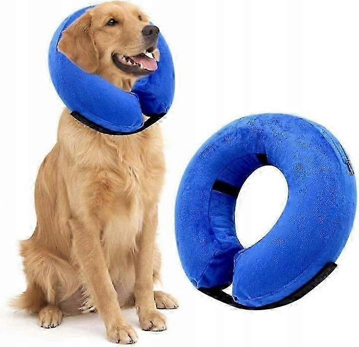 PROTECTIVE DOG COLLAR INFLATABLE "L" Other colours and smaller sizes available Protective collar to prevent, among others,in. licking of postoperative wounds by a dog. Built-in harnesses inside the collar allow it to be worn over the collar when the dog tries to take the collar off Adjustable Velcro strap allows you to perfectly adjust the collar do the circumference of your pet's neck to make it safe and comfortable. Soft material provides comfort to your pet during use After draining the air, it takes up little space Collar designed for large dogs: Size: L Neck circumference: from 38cm do 49cm Color: Blue Other colours and smaller sizes available