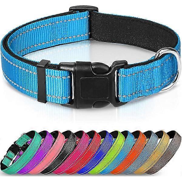 Dog Collar, Reflective Padded Neoprene Collar, Adjustable Nylon Collars for Extra Small and Puppy Dogs, M, Blue