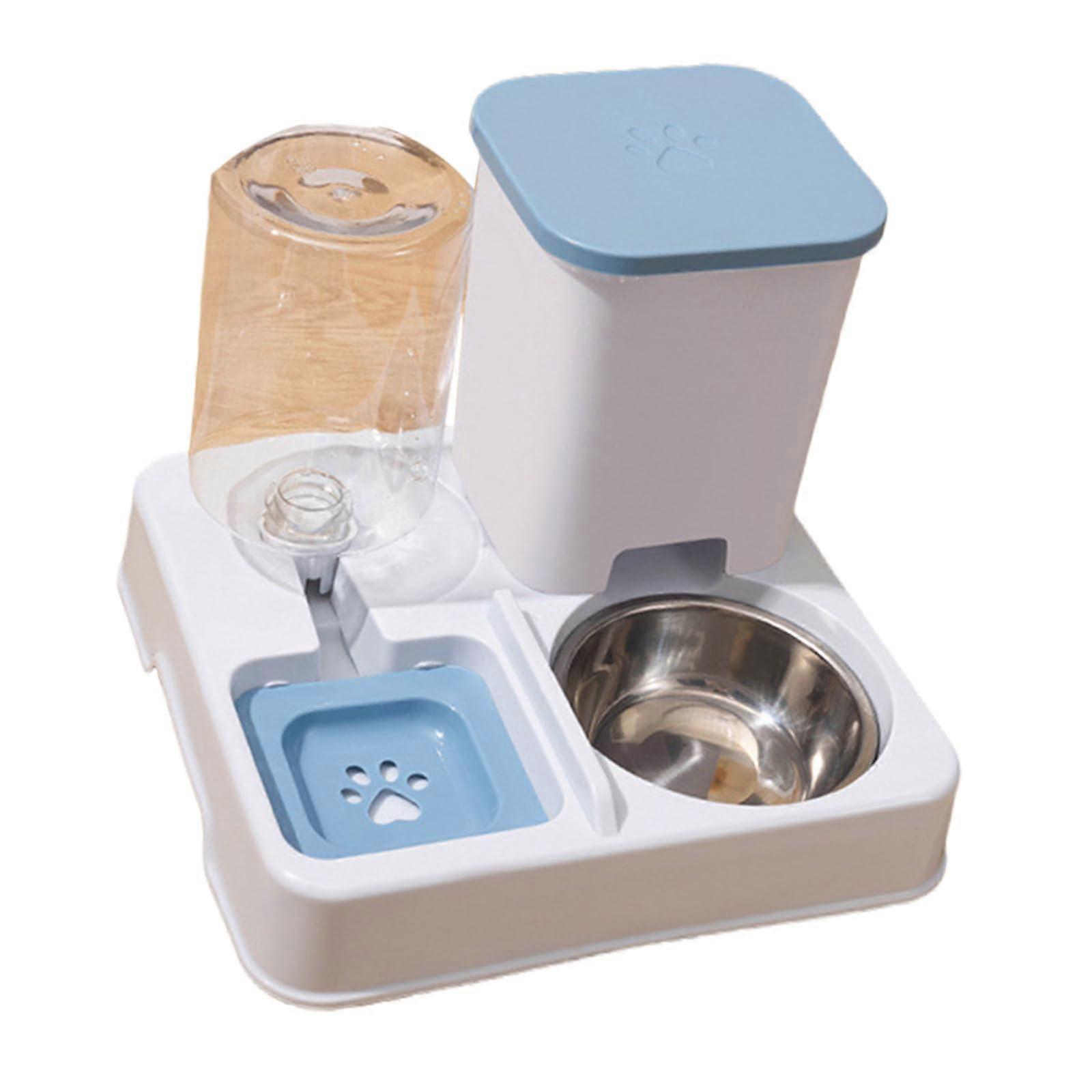 2in1 Double Bowl for Dogs, Transparent Water Dispenser and Pet Food Feeder, Automatic Watering, Large Capacity, Blue/White