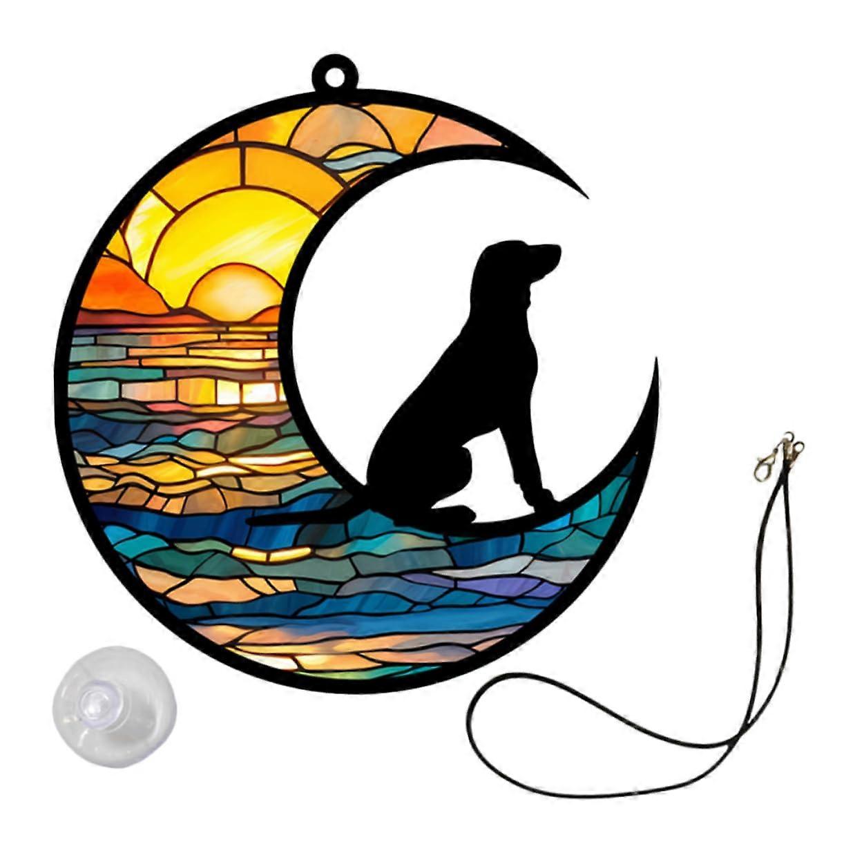 Dog Memorial Acrylic Pet Commemorative Plaque Window Pendant Moon Ornament 12.70 x 12.00 x 0.40 cm Colorful