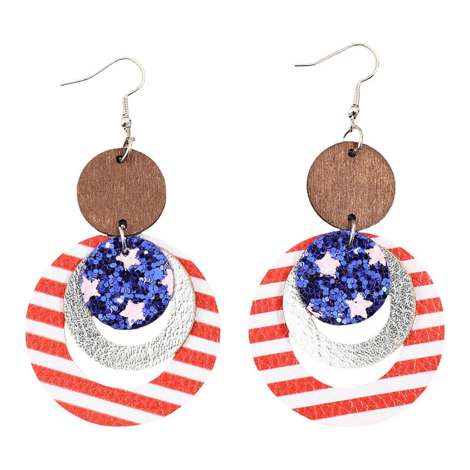 Independence Day Theme Earrings Unique Ear Jewelry Dangle Earrings with Star Leather Texture Suitable for Festival Wear