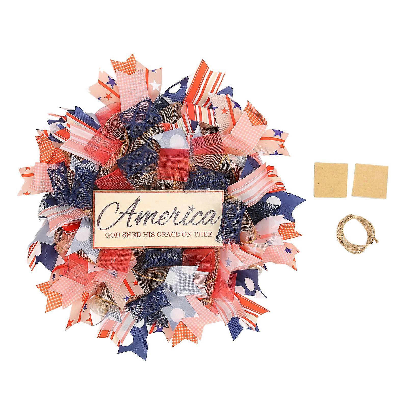 Independence Day Wreath Hand Knitted Wall Hanging Pendant With Hemp Rope For Home Decoration