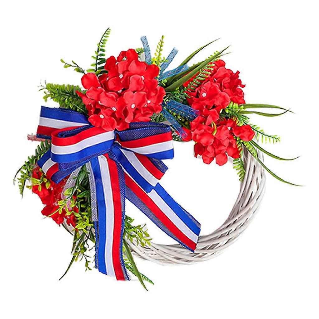 Independence Day Wreath Flower Bow Patriotic Veterans Day Garland for Front Door Wall Ornaments 4th of July Gift