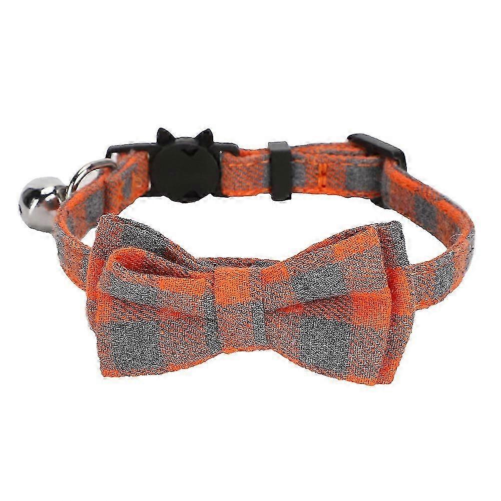 Cats Cute Bowknot Collars Plaid Tie Soft Cloth Bowtie with Bell Pets Decoration SuppliesOrange