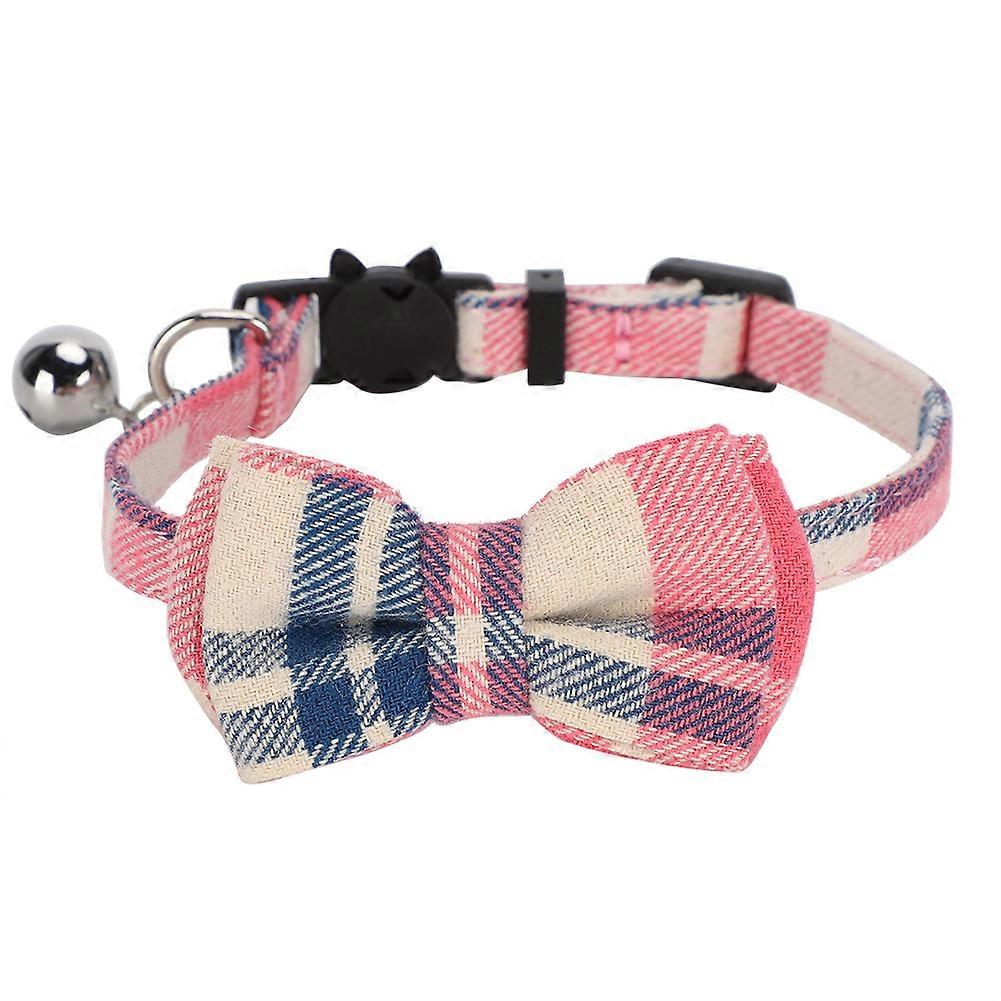 Cats Cute Bowknot Collars Plaid Tie Soft Cloth Bowtie with Bell Pets Decoration SuppliesPink