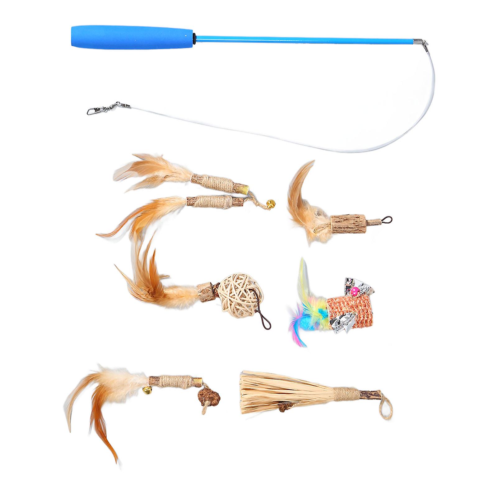 Cat Toys 6 Replacement Heads Retractable Interactive Eco Friendly Lightweight Easy to Store Cat Teaser for Indoor