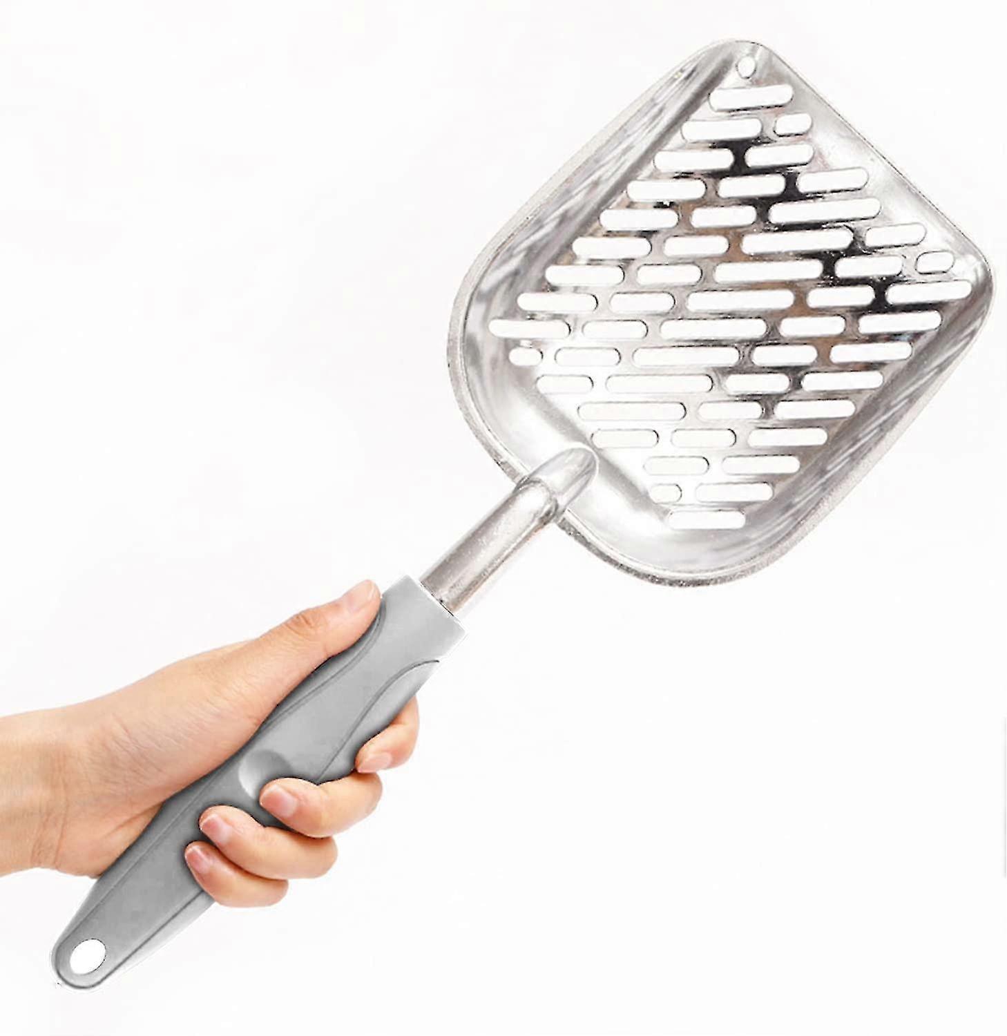 High QualityCat litter scoop made of aluminum alloy, which is durable and convenient for frequent use and lasts longer than the plastic ones. You won't worry it will break, patch or rust easily. Size(cm): 36(L) x 15(W) x 4.5(H) 0.5cm Slots0.5cm slots are wide enough and high efficiency, Specially for easy to clean litter, perfect gap ensure clean and simple, more practical and convenient. to scoop up clods and sift clean garbage. Works with most large and sticky cat litter. Effective CleaningWith this cat litter scoop in hand, you can get the job done easily and it helps to keep your house more hygienic as well as prevent bad smells too stay long.Have it and make cleaning easier now Ideal for all throw types. Makes an awkward chore less ugly. Convenient ConstructionThe litter box scoop features a solid aluminum alloy body and an ergonomic, rubber-molded handle. The scoop is deep enough to pick up even the largest lumps and the curved sides of the Scatter vanes help prevent scattering. perfect for entering the corners and cleaning the litter box more effectively and vigorously. Easy to CleanSmooth surface makes it very easy to clean, just wipe or wash with the water. And your throwing shovel is ready to use again in just a few seconds.