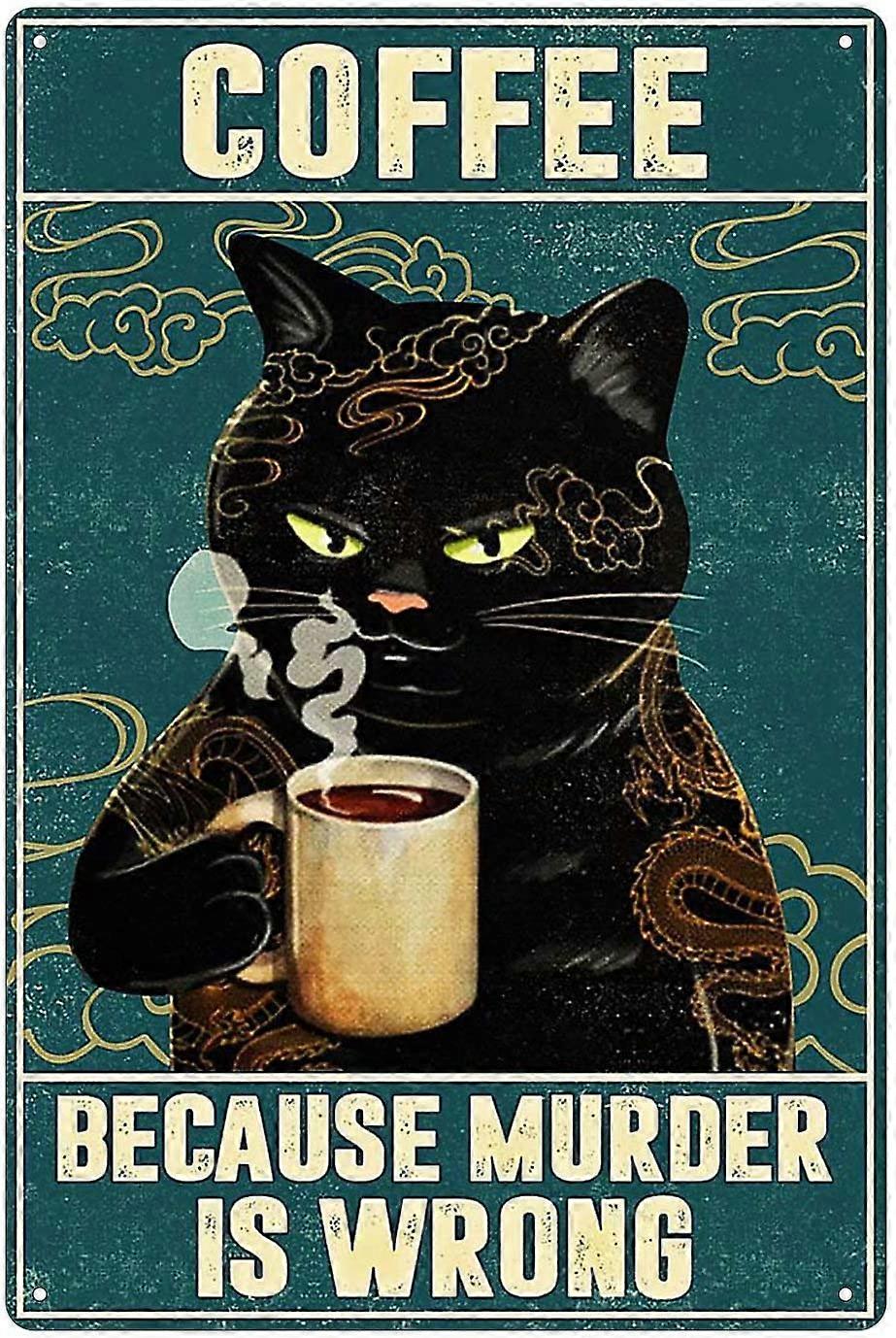 Metal Tin Sign of Cat Coffee Style It's Because Murder is Wrong Vintage Retro SignCoffee and Bar Wall Art Decor Iron Painting 8X12 Inch