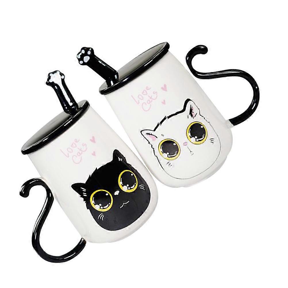 Ceramic Tea Mug with Cat Design Home Use Cute Couples Style Drinking Cup 2Pcs