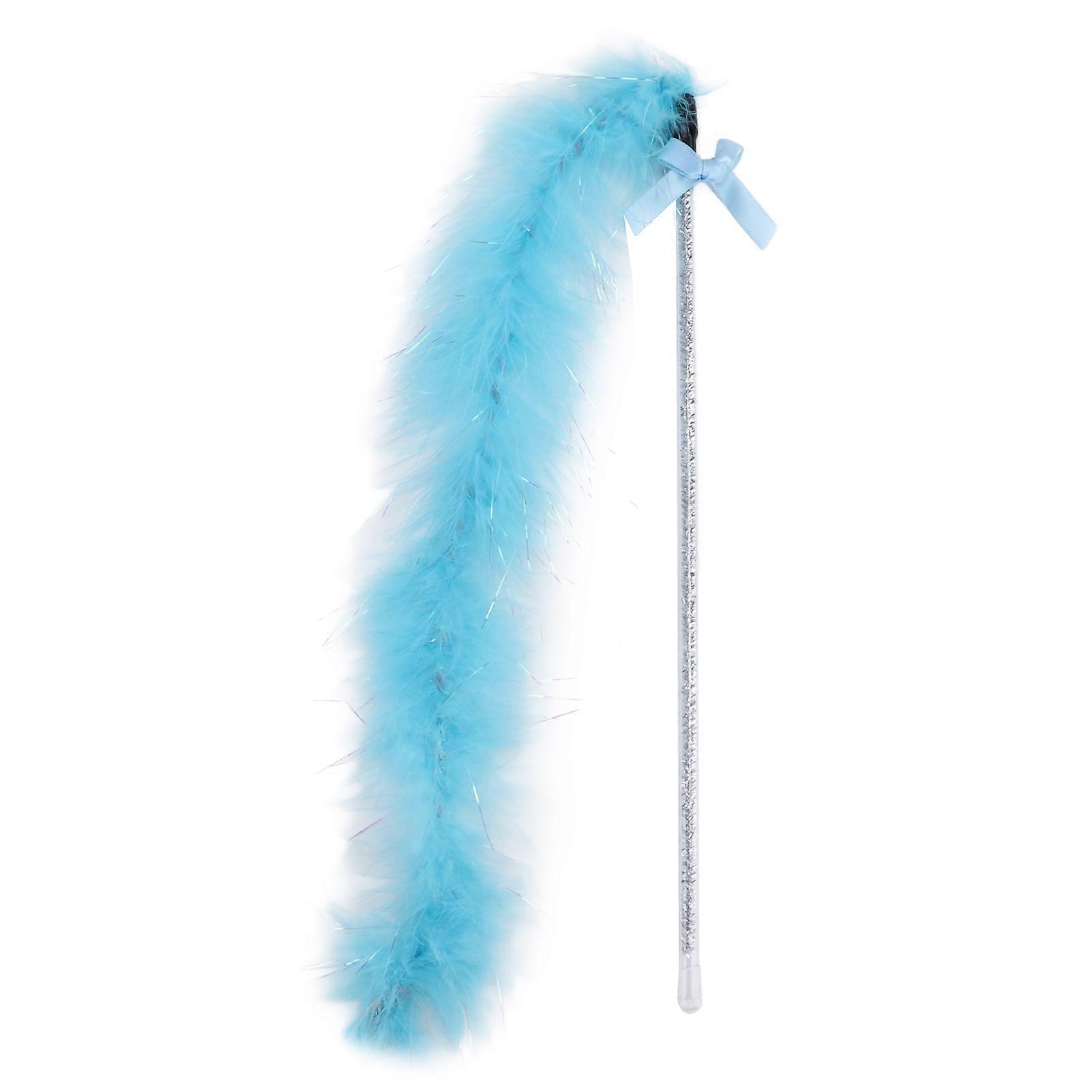 Cat Teaser Toy Fairy Princess Shiny Tassel Wands with Bell for Indoor Cats Kitten Play Chase ExerciseBlue Silver Silk Feather