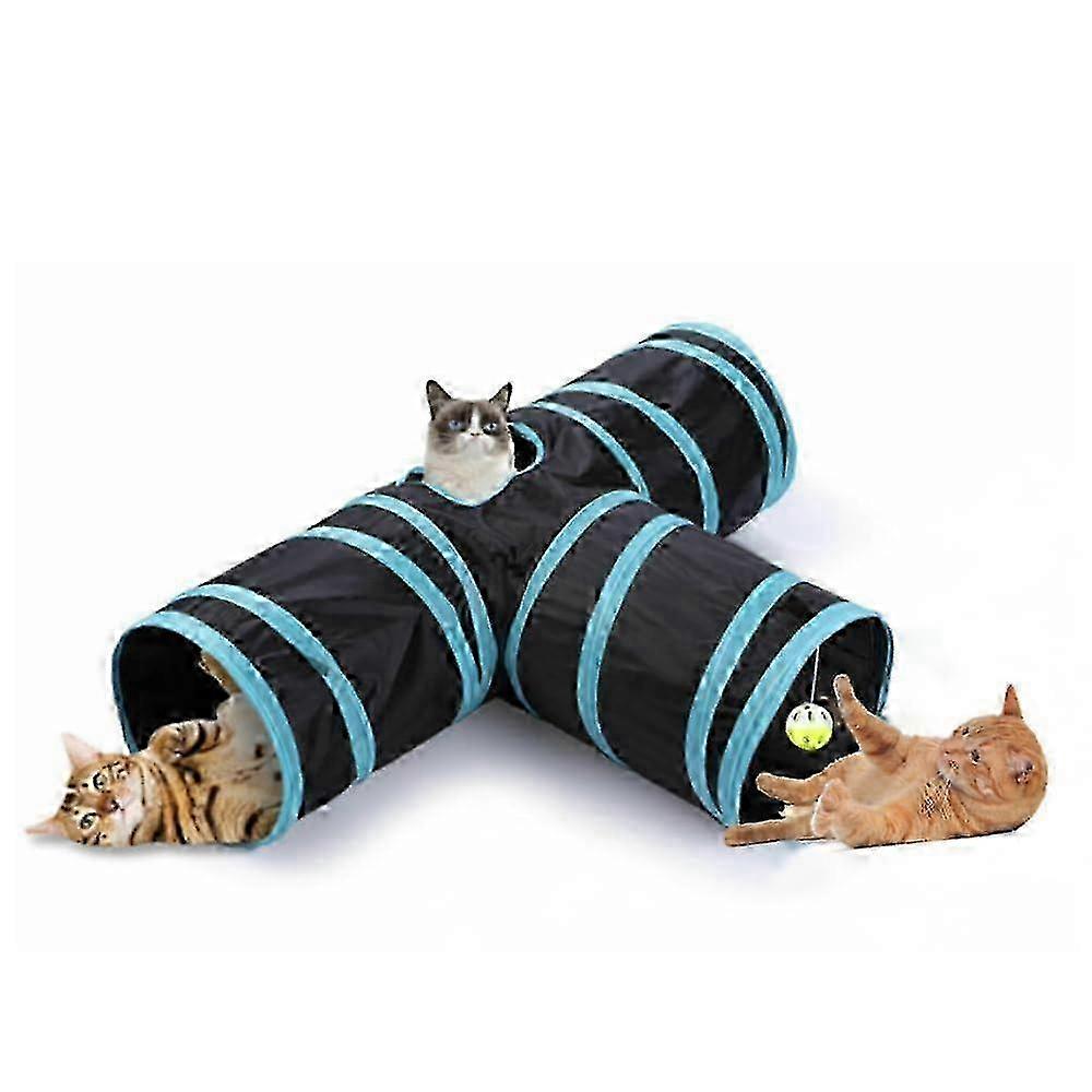 Cat Tunnel, 3-way tubes of internal wrinkle bell paper, foldable pet tunnels for indoor/outdoor player for cats, rabbits-jewel blue