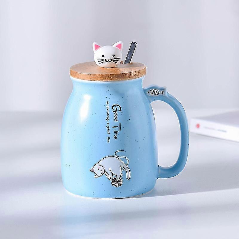 Cat Mug Cute Ceramic Coffee Cup With Lid And Spoon,380ml blue