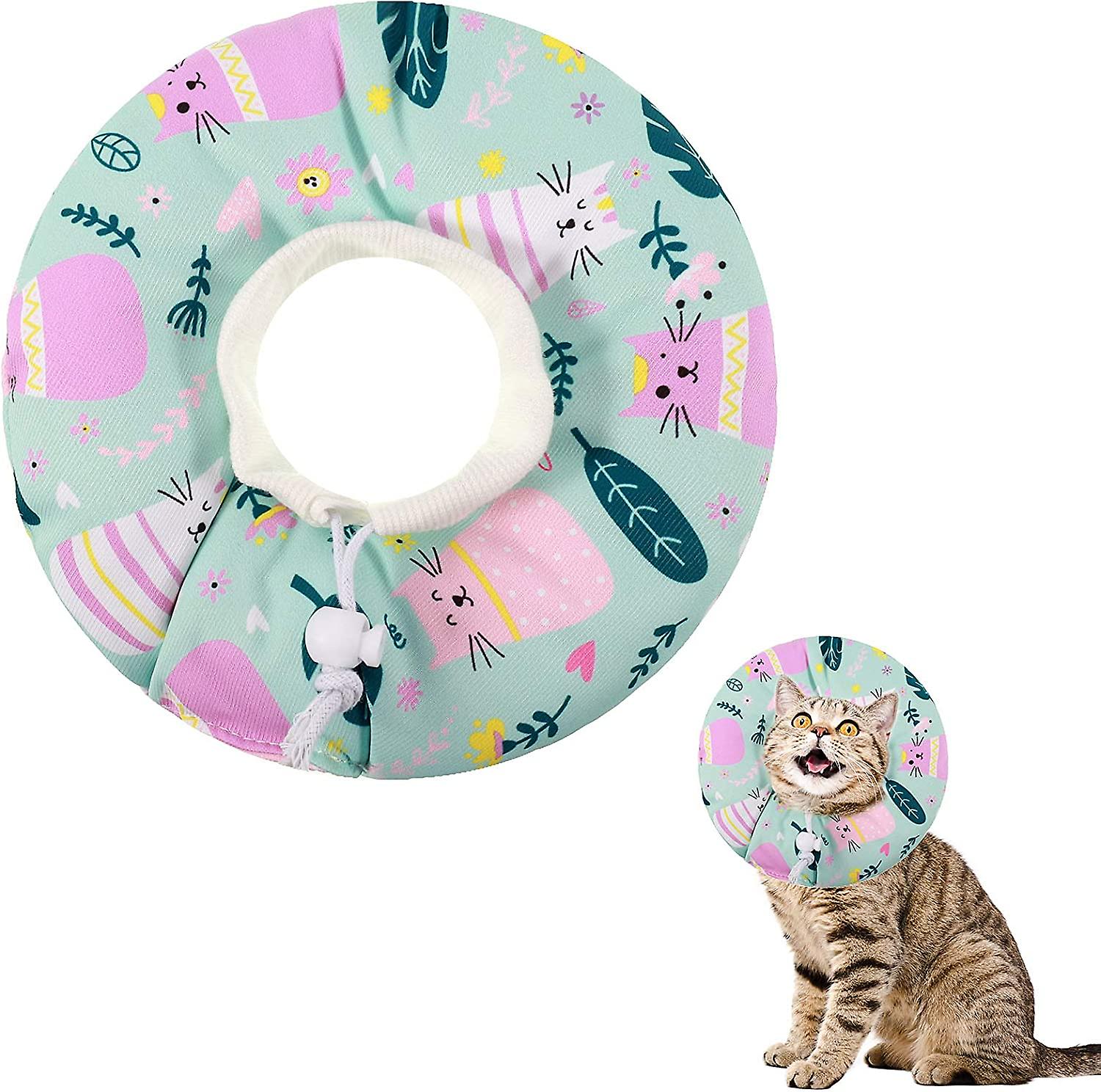 Cat Cone Collar Recovery Collar Pet Kitten Soft Protective Neck Collar After Surgery Adjustable Healing Elizabeth Collar Comfy Cotton Cone (S, Cartoon
