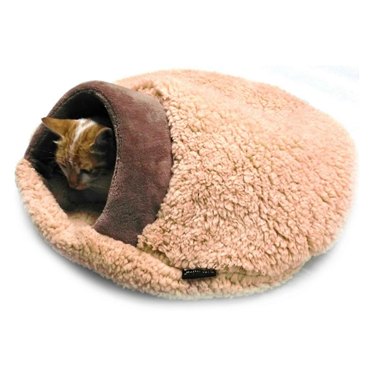 Cat Nest Bed Cozy Cat Cave Beds Warm Cave Hamburger Shape Fabrics 60x50x16cm Brown 1Set