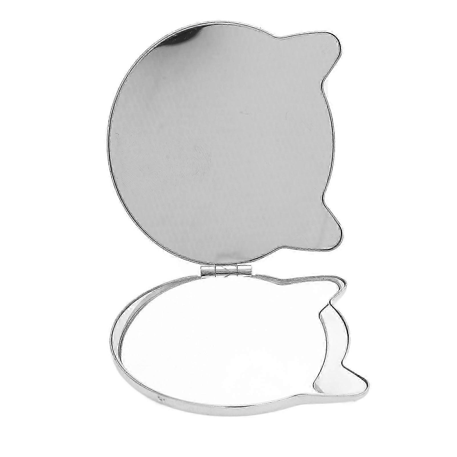 Cat Shape Compact Makeup Mirror 2.7x2.6in Stainless Steel Drop Resistant