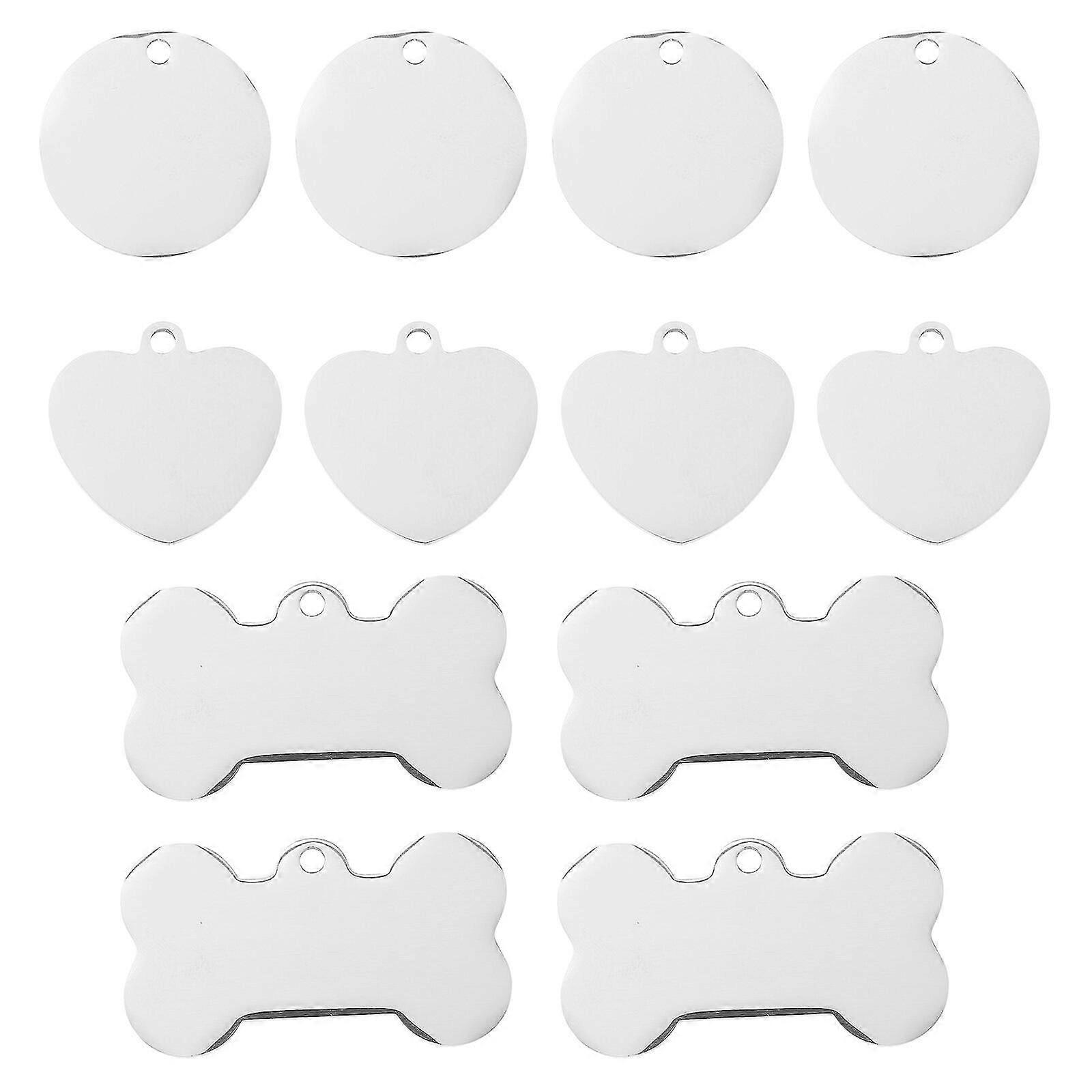 12pcs Stainless Steel Pet Tag Round Bone And Heart Shape Tag For Cat Dog