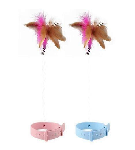 Cat Feather Toy Pet Collar, , silicone collar spring bell feather cat stick. (blue, pink)