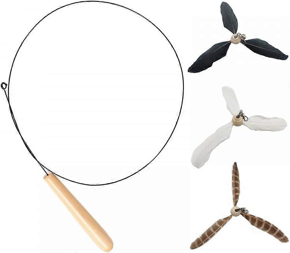 Cats Feather Toy Set, Flexible Steel Wire Cat Teaser Cat String Toy with 3 Feather Refills for Kittens Cats