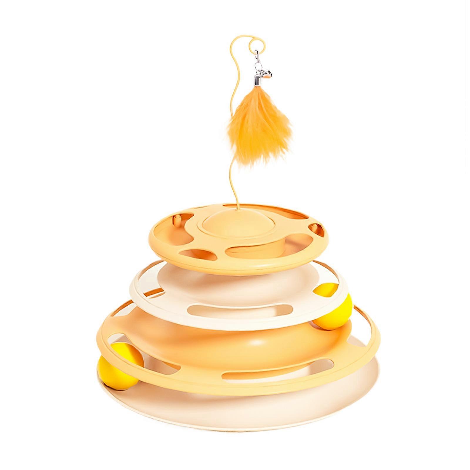 Cats Feather Toy Rotating Cats Teaser RollerTrack Toy Interaction Pet Indoor Toy Cats Turntable Teaser Toy Cats Favor orange color