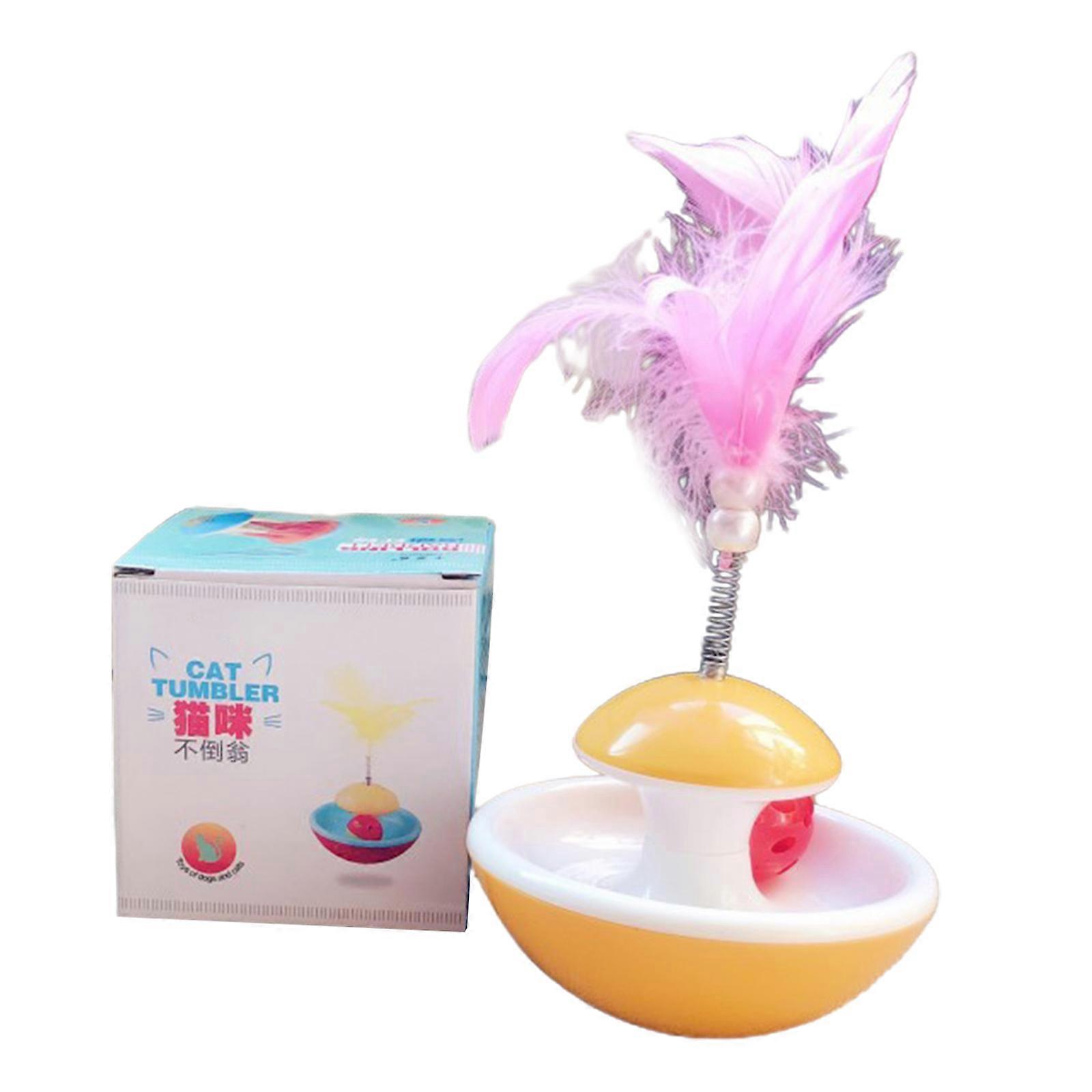 for Cat Feather Bell Tumbler Toy Colorful Fall-resistant Spring Track Pet for Creative Playing Supplies for Indoor Borin Yellow