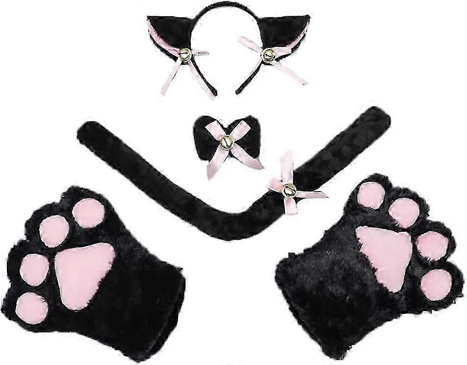 Cat Ear Hair Hoop Collar Tail Paws Gloves Cosplay Costume Set For Adult
